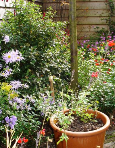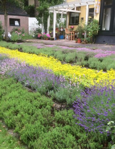 Mijn kracht ligt in het pure tuinonderhoud, kleurrijk maken van de tuin, verbeteren van de bodem, waterhuishouding, en het mooi maken van hoekjes ‘waar alles zo slecht groeit’. Het huidige onderhoud telt zo’n 50 tuinen variërend van postzegeltuinen tot bostuinen van 1800m2.